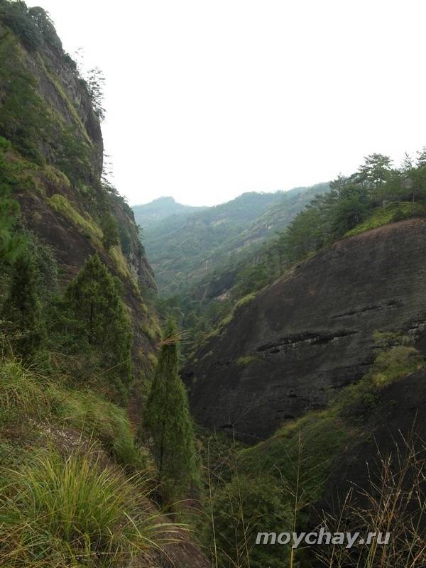 Вид на ущелье, где растут кусты Да Хун Пао, со стороны тропы к монастырю Тянь Синь.