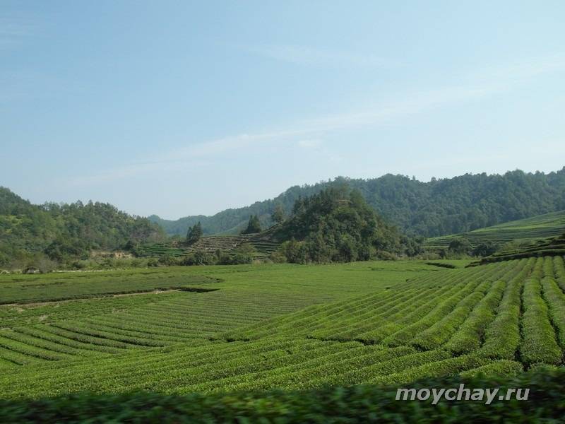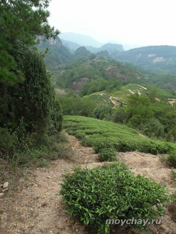 Чайные плантации примерно в 50 километрах в югу от города Уишань, предгорья УИ. Здесь делают так называемые "равнинные" северофуцзяньские улуны. В отличие от утёсных, они ценятся значительно меньше.