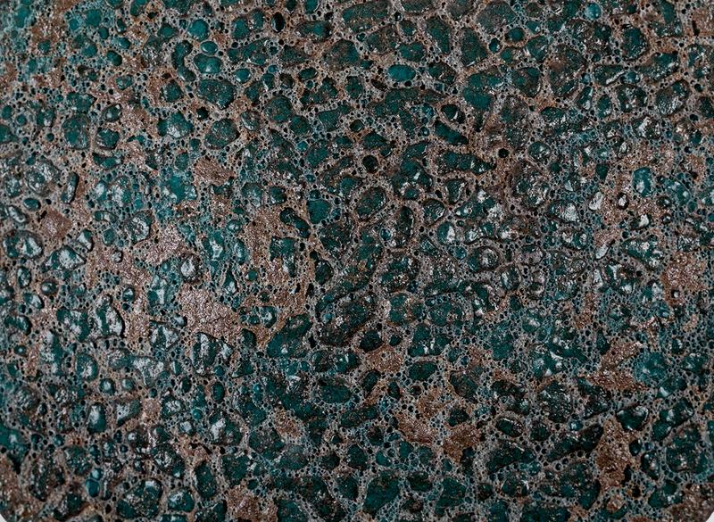 Это авторская керамика из Дэхуа, созданная с применением особой технологии. Изделие покрывается специальной глазурью, которая во время обжига пузырится, а затем поверхность тщательно полируется, создавая неповторимый фактурный рисунок. Уникальная техника, применяемая крайне редко.